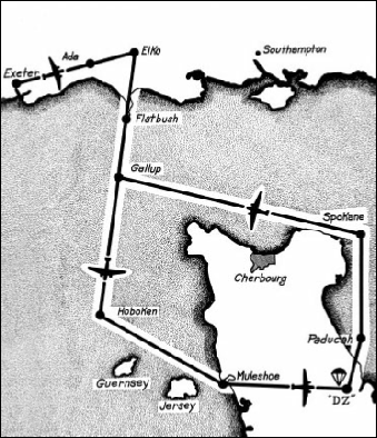 After take off, the four squadrons, totalling 45 aircraft, and code named Serial 10 carrying 723 men and 2 platoons from C/326th Airborne Engineers also of the 101st Airborne headed for the assembly area at Portland, in poor weather, before joining aircraft from other southern airfields for the journey across the Channel.
