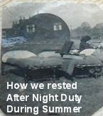 Then back on duty at 8am for the next shift. This all started in the worst winter for some years, it was so cold that the main water tank split open one night and the water froze in midstream to form an arc from the tank to the ground. Their accommodation was in unlined Nissen huts, each with a small stove providing the bare minimum of heating.