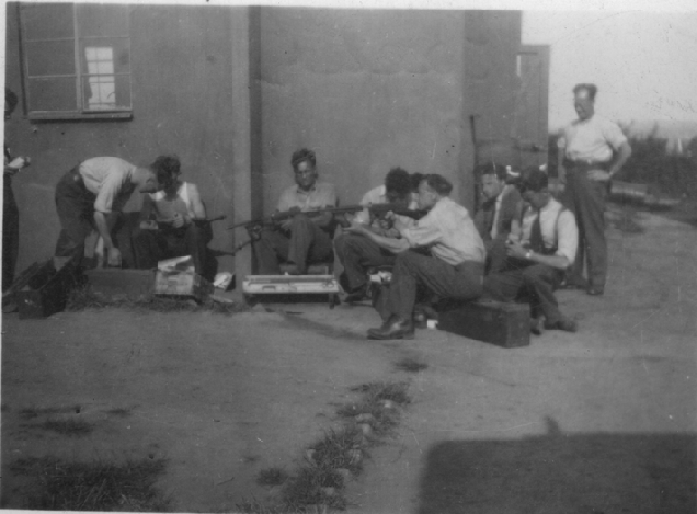 Bert Strong who was in the RAF Regiment is fifth man in the middle line from the right, he served as an anti aircraft Gunner at RAF Exeter during 1940-